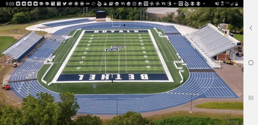 Bethel’s handsome new field and stadium improvements are shown by this photo supplied by Max Stein ’04.