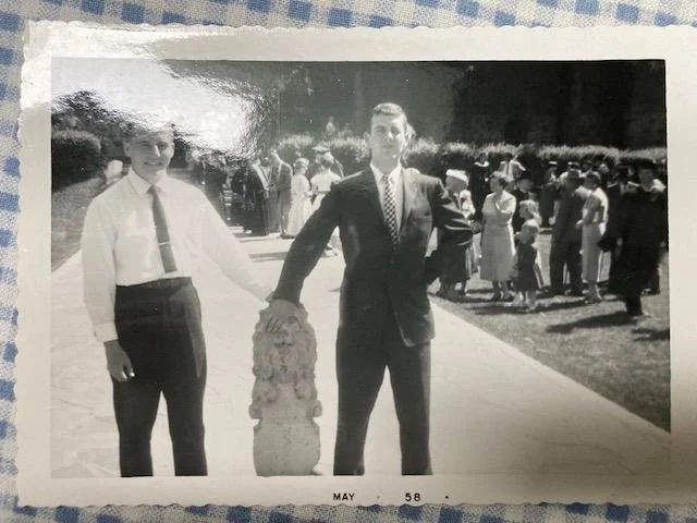 P.S. - Jim Randall (left) and and the late Frank Knoll (both SJP ’58/SJU ’62) pictured at graduation from Prep in 1958. The lion was, er, borrowed from the entrance to the old gym by Randall and some other young guy who prefers to remain anon.